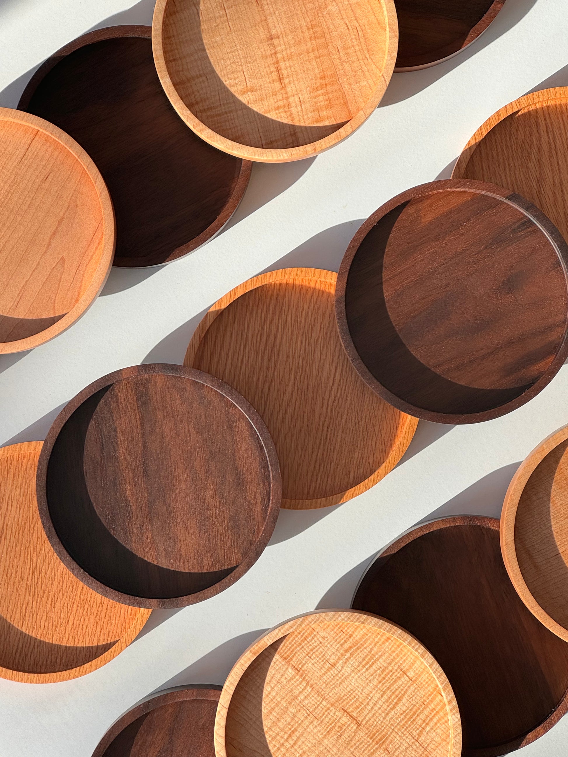Our round trays are the perfect accent for your entry table, dresser or counter. With a 5.5 inch diameter, each tray can hold a candle, mug, jewelry, or whatever else you want to contain in style.