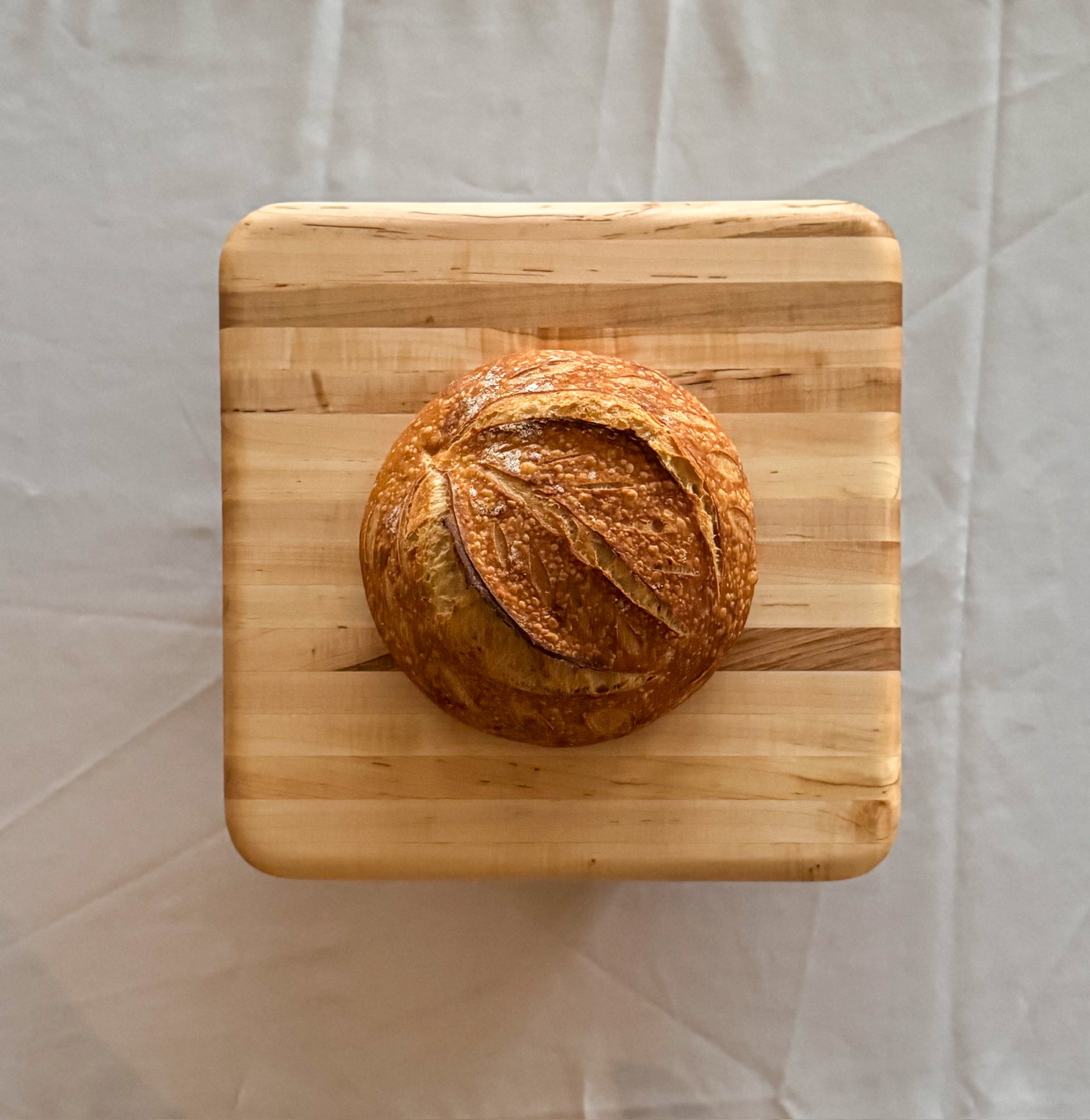Square size is approximately 14x14". This shape is perfect for cutting a loaf of sourdough, chopping veggies, or any other meal prep needs!